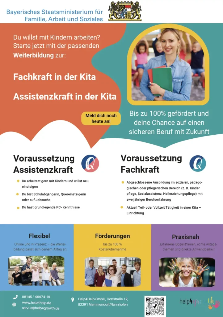 Qualifizierung zur Assistenzkraft in der Kita. Förderfähig und ideal für den Einstieg ins Berufsleben mit Kindern .